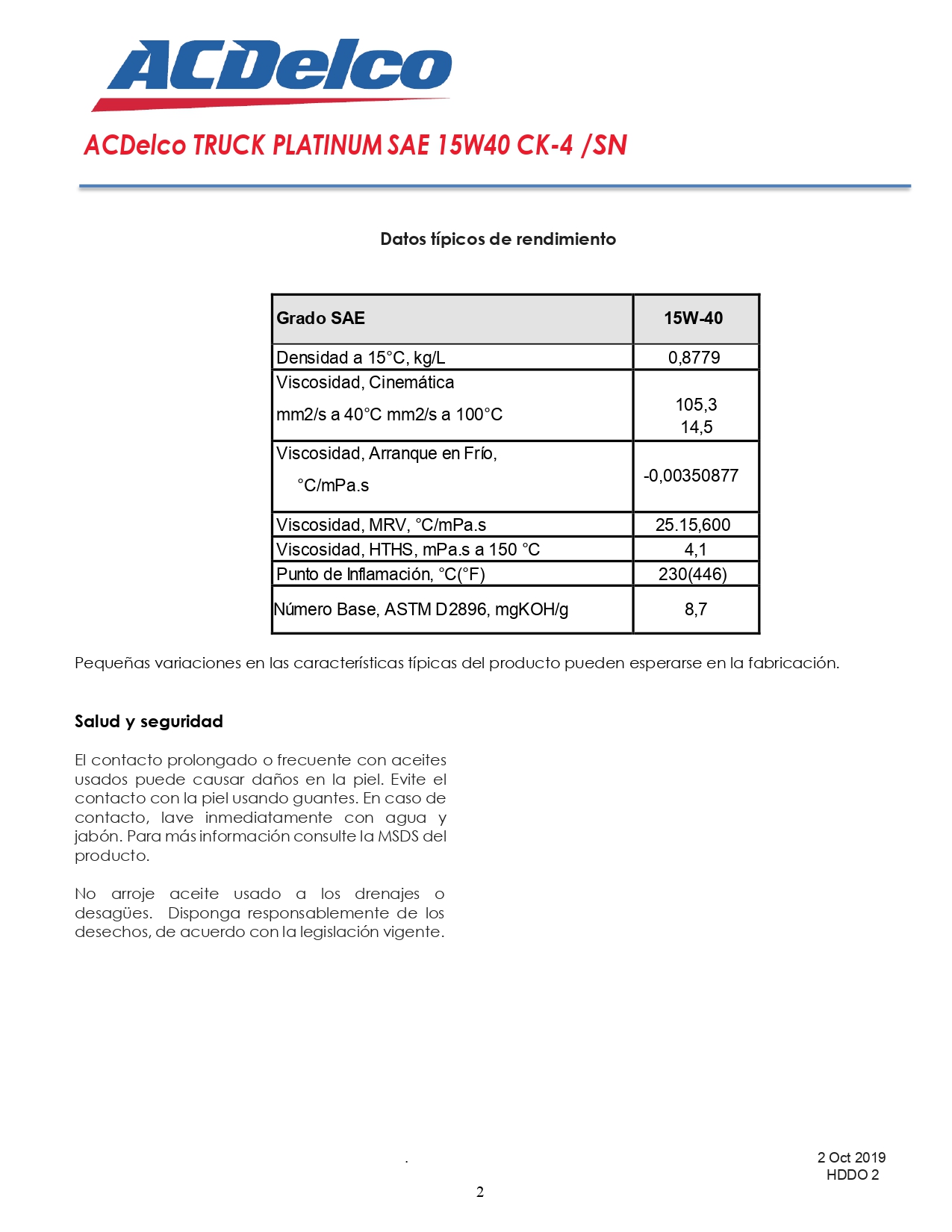 Descripción del producto: El aceite 15W40 platinum de la marca ACDelco es un aceite para motores de servicio pesado recomendado para todos los motores de gasolina y diésel de cuatro tiempos, atmosféricos y turboalimentados.